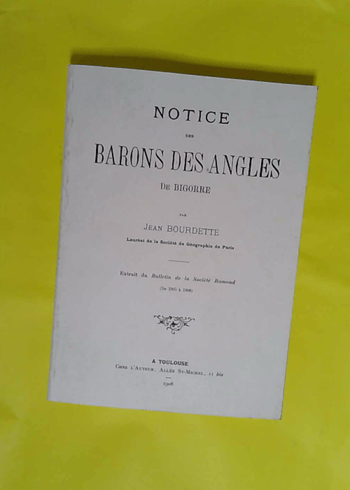NOTICE DES BARONS DES ANGLES DE BIGORRE Extrait du Bulletin de la Société Ramond (De 1905 à 1908) Réédition en 1989 – BOURDETTE Jean