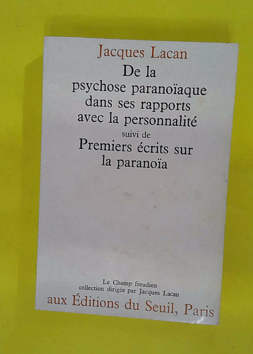 Etat : Bon état De la psychose paranoïaque dans ses rapports avec la personnalité. suivi de Premiers écrits sur la paranoïa – Jacques Lacan