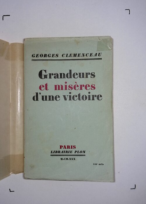 GRANDEURS ET MISERES D UNE VICTOIRE – Georges CLEMENCEAU